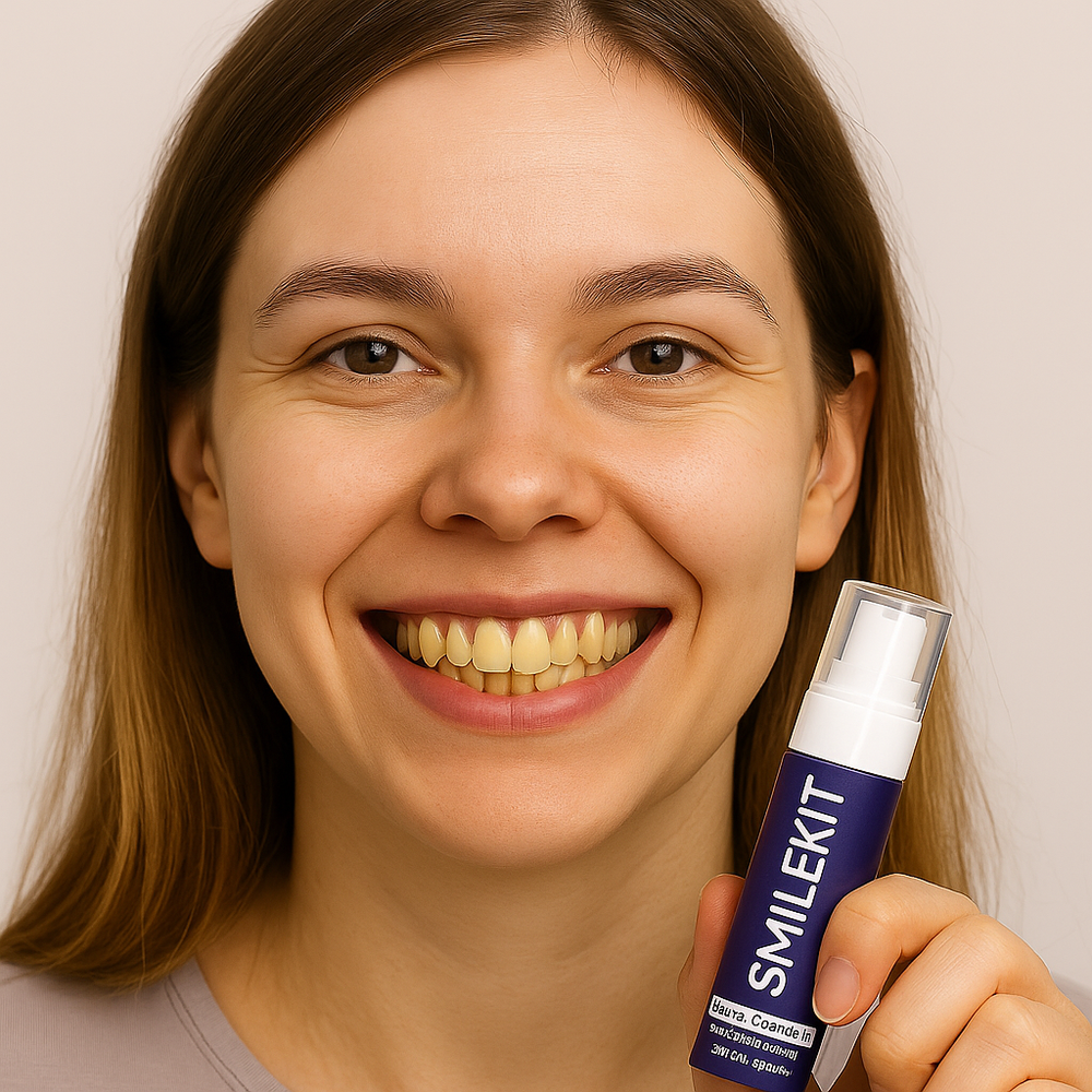 SmileKit elimina los tonos amarillos y deja tus dientes visiblemente más blancos desde el primer uso, cuidando tu esmalte y ofreciendo resultados inmediatos.