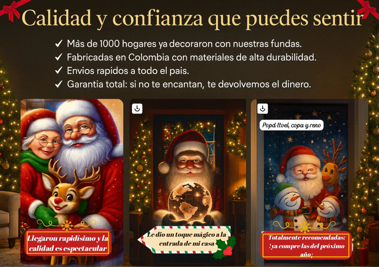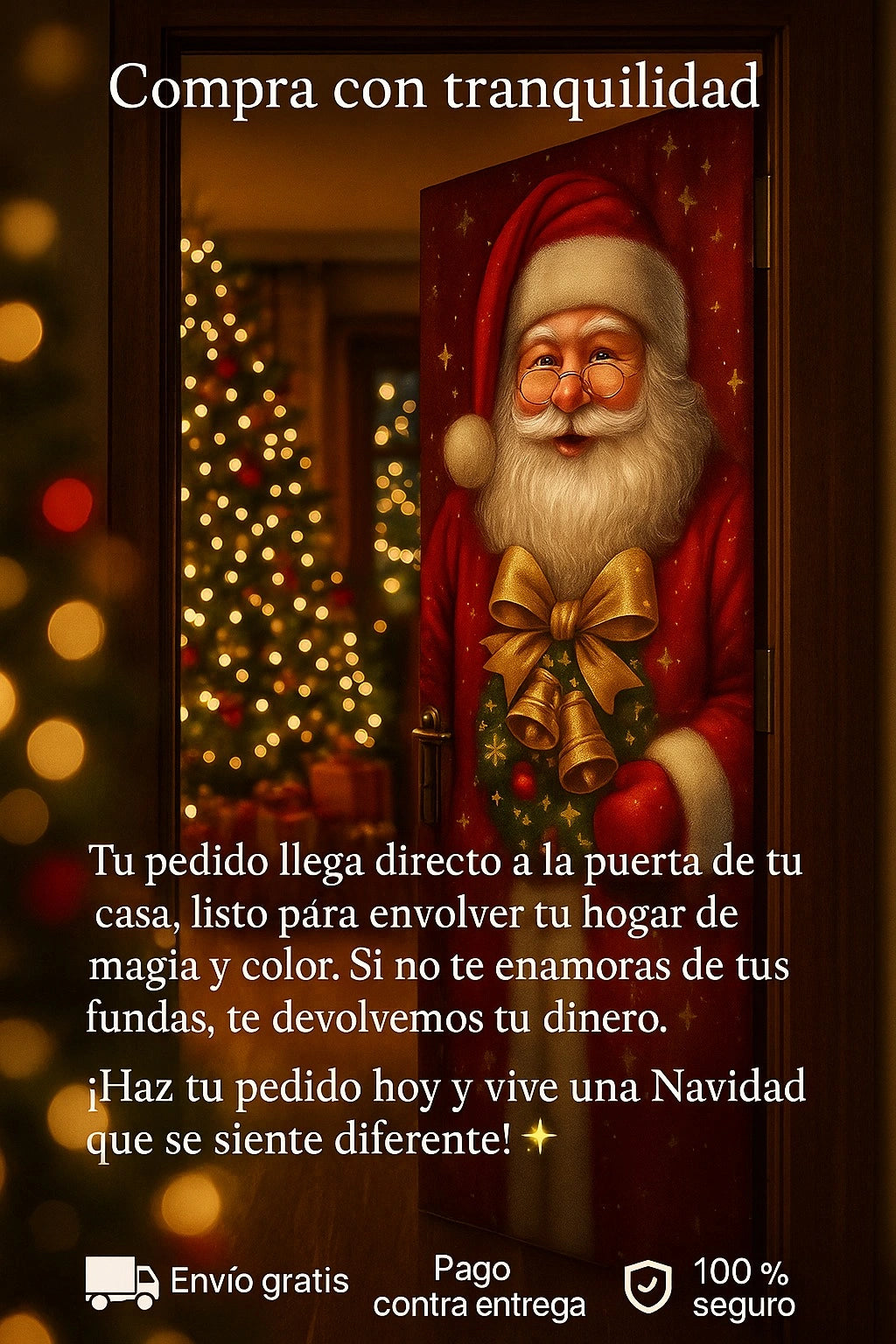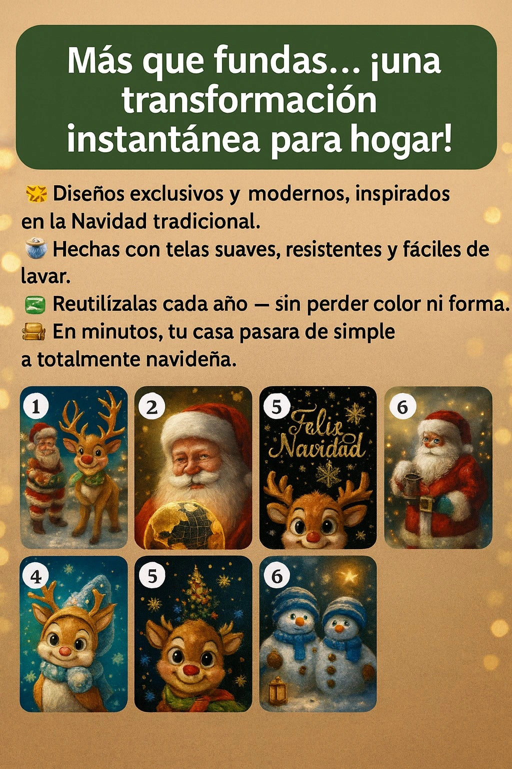 Con nuestras Fundas Navideñas Premium, transformarás tus espacios en segundos. Disfruta de una decoración elegante, práctica y duradera que llenará tu hogar o negocio del verdadero espíritu navideño.