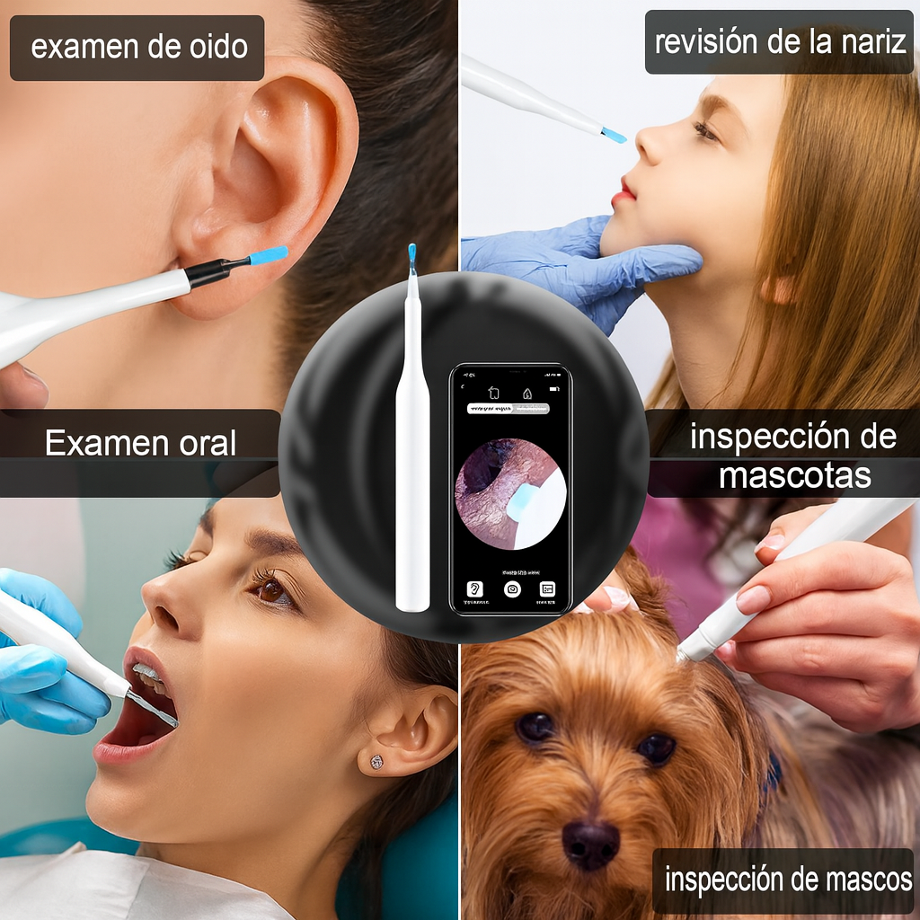 Descubre y elimina el cerumen de forma fácil y sin riesgos. Conéctalo a tu teléfono vía WiFi, visualiza en tiempo real y cuida la salud auditiva de toda tu familia.