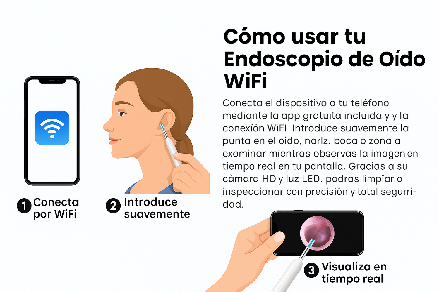 Cómo usar tu Endoscopio de Oído WiFi