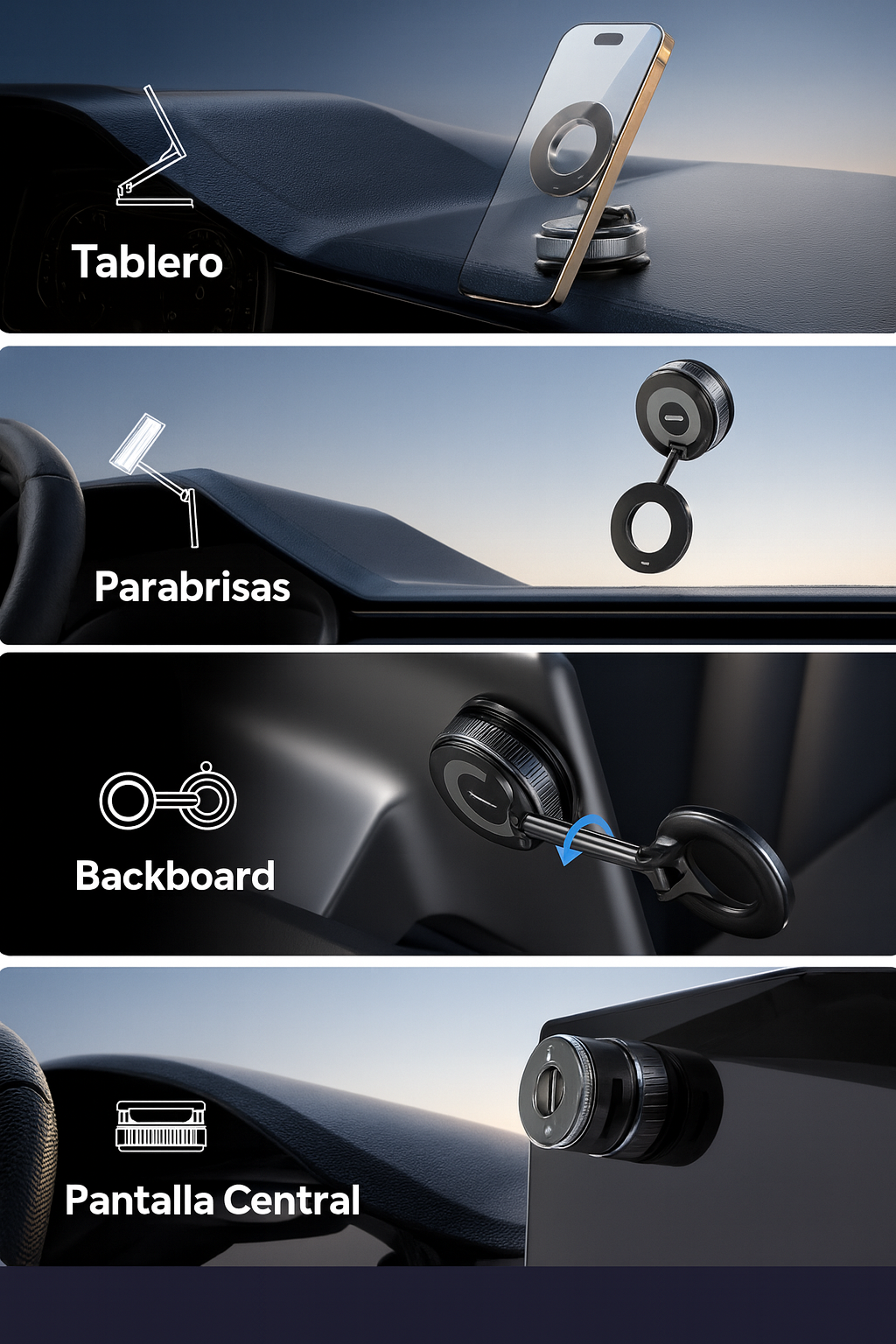 Descubre el Soporte Magnético Premium: sujeción potente y estable para tu smartphone en carro, oficina o hogar. Instalación en segundos, rotación 360° y compatibilidad universal.